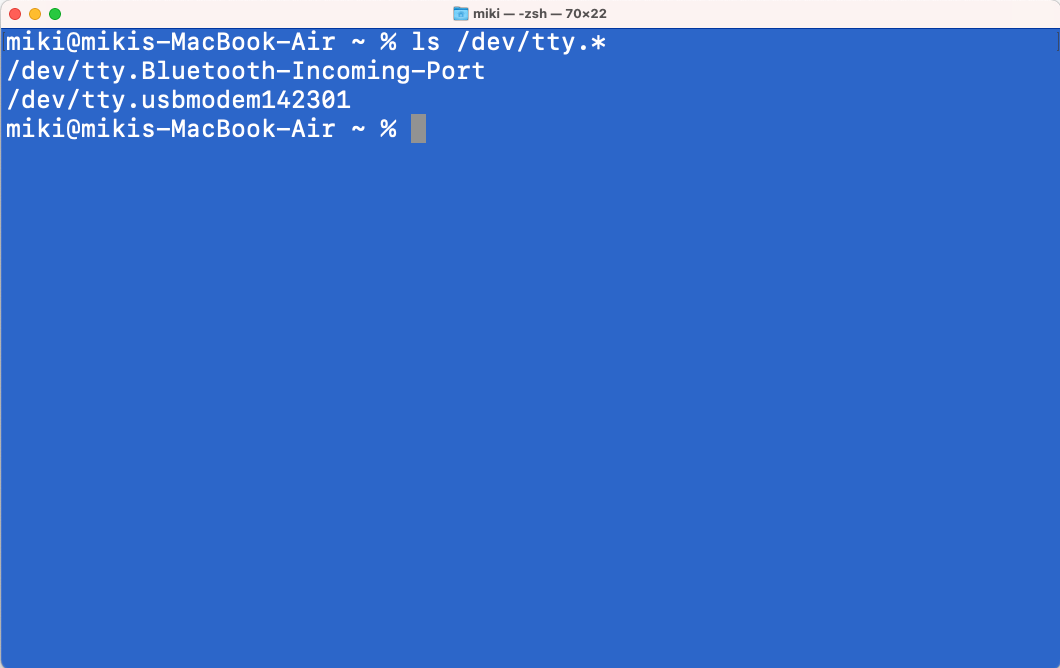 ls /dev/tty*The port of the Pico will probably be named something like: